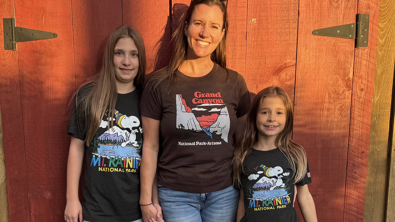 If you’re looking to represent your unique park journey, the National Parks Collection from HOMAGE has a variety of styles to choose from to celebrate your favorite park. Brynne noted that she and her daughters like representing parks they’ve visited — which include the water and mountain landscapes in the Pacific Northwest near their home. She likes that when people ask if she’s visited the park on her shirt, she can tell them a story or two about her adventure there.