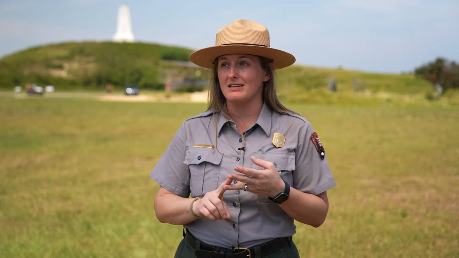 After that disastrous year, though, it was the Wrights’ younger sister Katharine whose cheering on kept them from quitting, the ranger explained. “She was the one that kept them on the path, she encouraged them and built up their confidence and really just ensured that they kept chasing their dream,” she said. Once they succeeded, Katharine became “their social manager,” assisting with building up her brothers with contacts throughout their career.