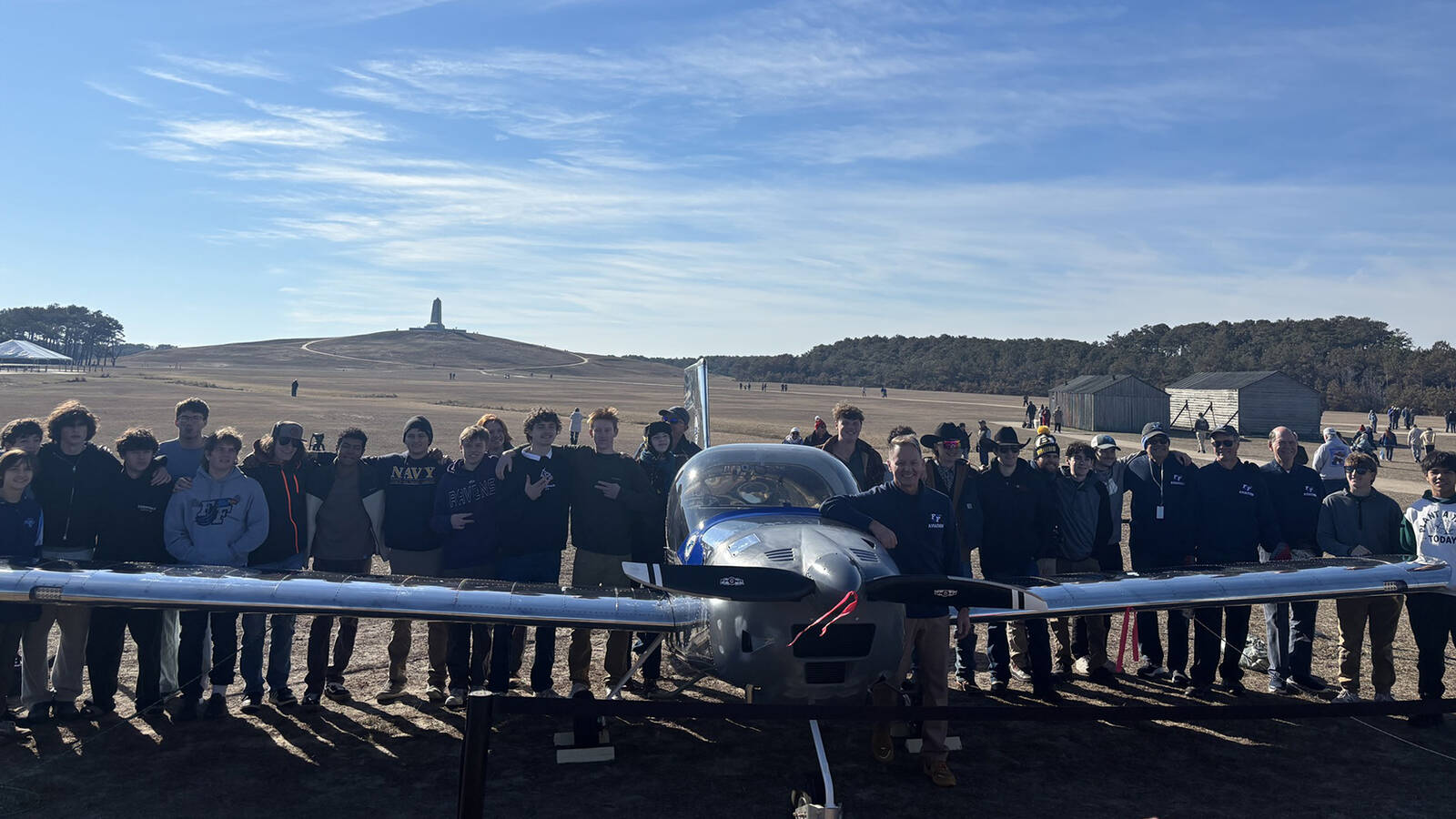The students completed that project in late 2025, unveiling their two-seater plane at the Wright Brothers National Memorial on Dec. 17 — the 122nd anniversary of brothers Orville and Wilbur Wright’s first successful flight of a heavier-than-air, controlled, powered aircraft at Kitty Hawk, North Carolina.