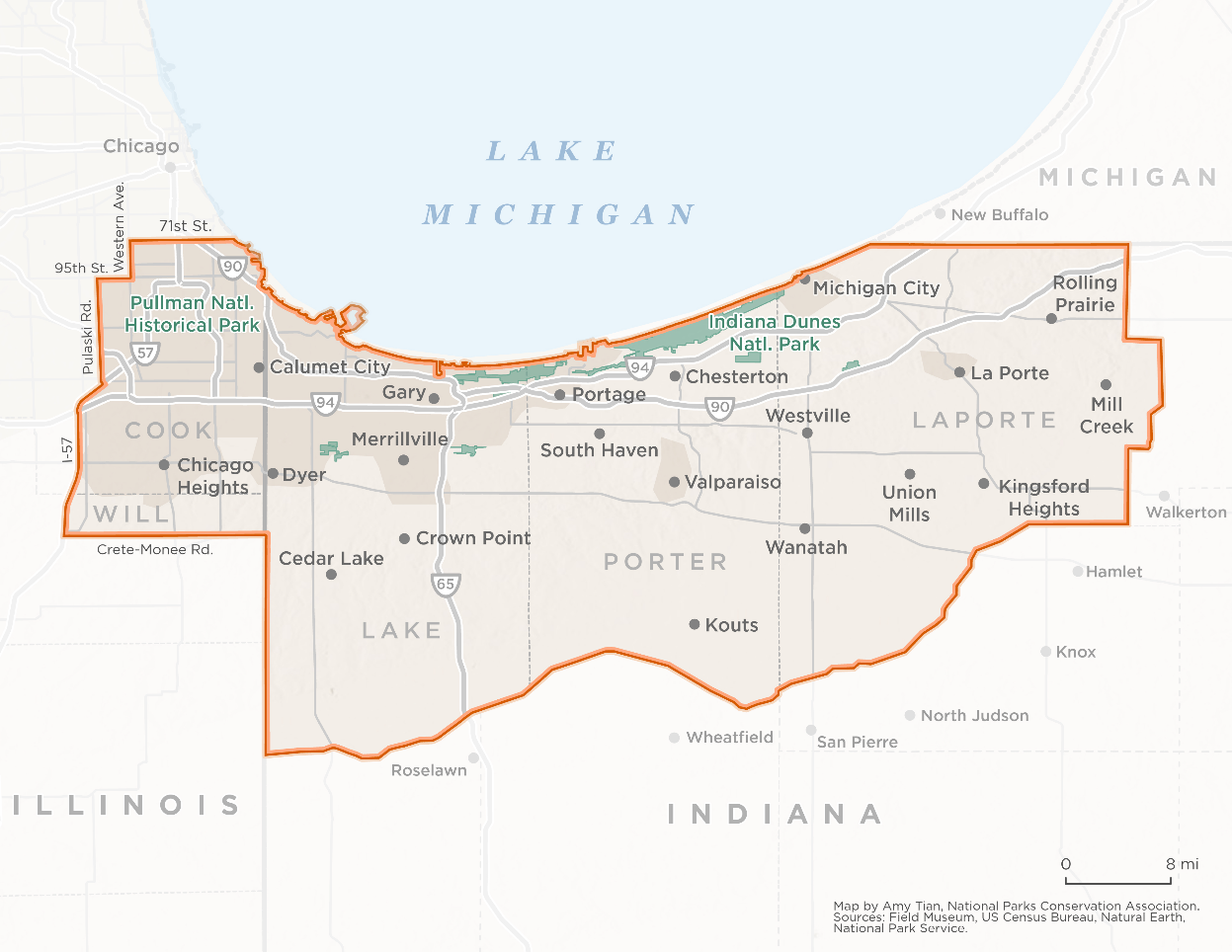 The proposed Calumet National Heritage Area. Map by Amy Tian.